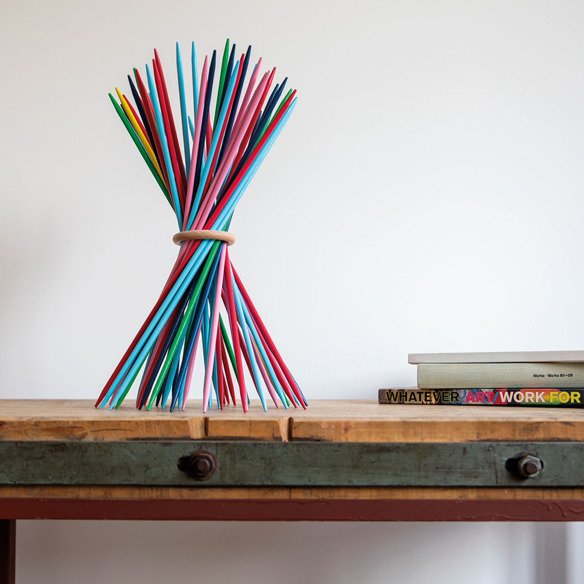 Bien plus qu’un simple objet, le Stickado est un objet design ludique qui incarne parfaitement l’esprit de la collection : transformer des objets quotidiens ou des jeux classiques en pièces d’art contemporain. Les bâtonnets, peints dans la palette chromatique distinctive et énergique de Remember, créent un bouquet sculptural qui apporte une touche pop et joyeuse à votre intérieur.