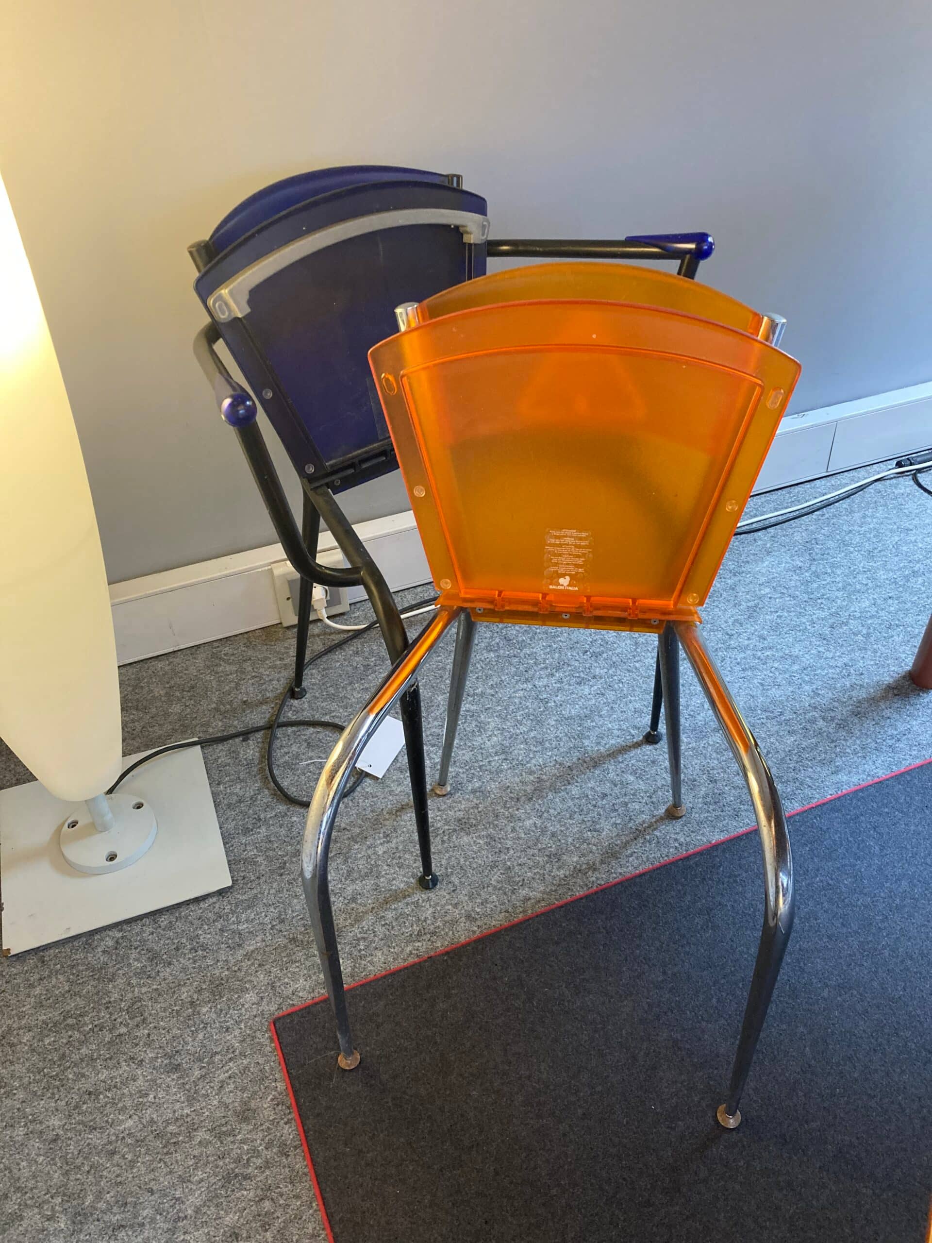 État : Très bon état vintage (Structure chrome brillante, légères marques d’usage sur le plateau d’assise).